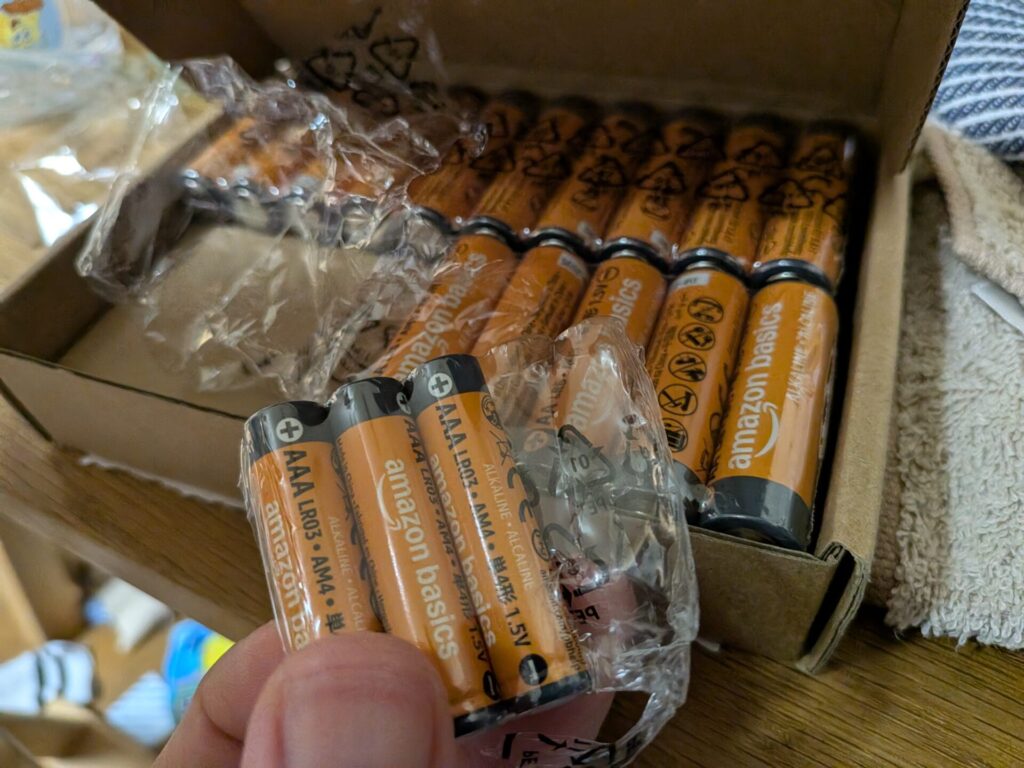 どちらにせよ育児する身としては単三電池も単四電池も常備しておいた方がオススメです。