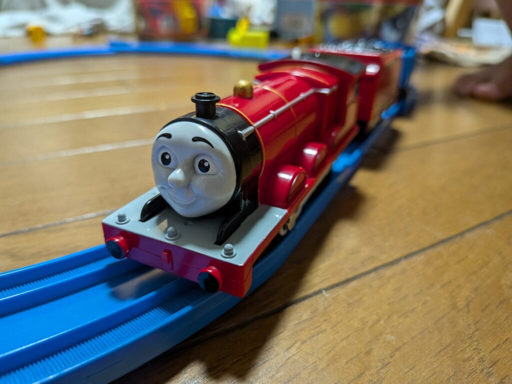 今回は幼稚園入園を控える3歳半の息子に、タカラトミー 『 プラレール トーマス OT-03 おしゃべりジェームス えいごプラス 』をみにぱぱがAmazonで購入。